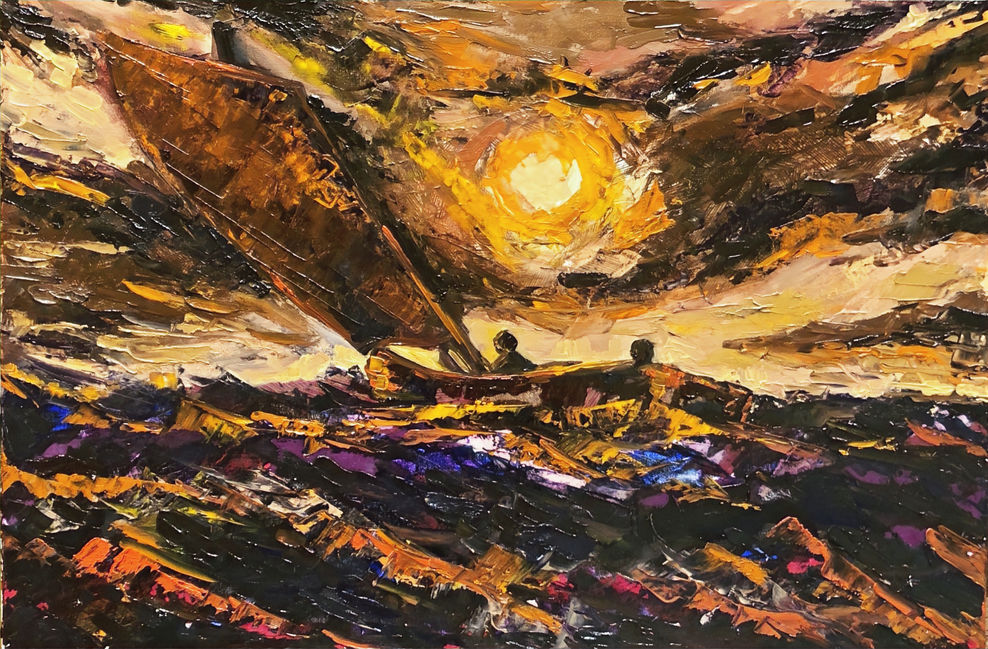 Step into a world of artistry where paintings of varying scales adorn the gallery, each boasting highly textured surfaces. Experience the masterful combination of oil paint, paper, marble dust, and metal leaves by Fr. Michael Reyes, OFM. His bold brush strokes bring the canvas to life, allowing colors to dance and play, while the textured edges create captivating reflections, adding a unique sense of dimensionality to his work.